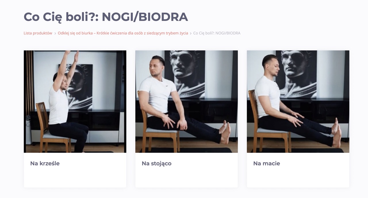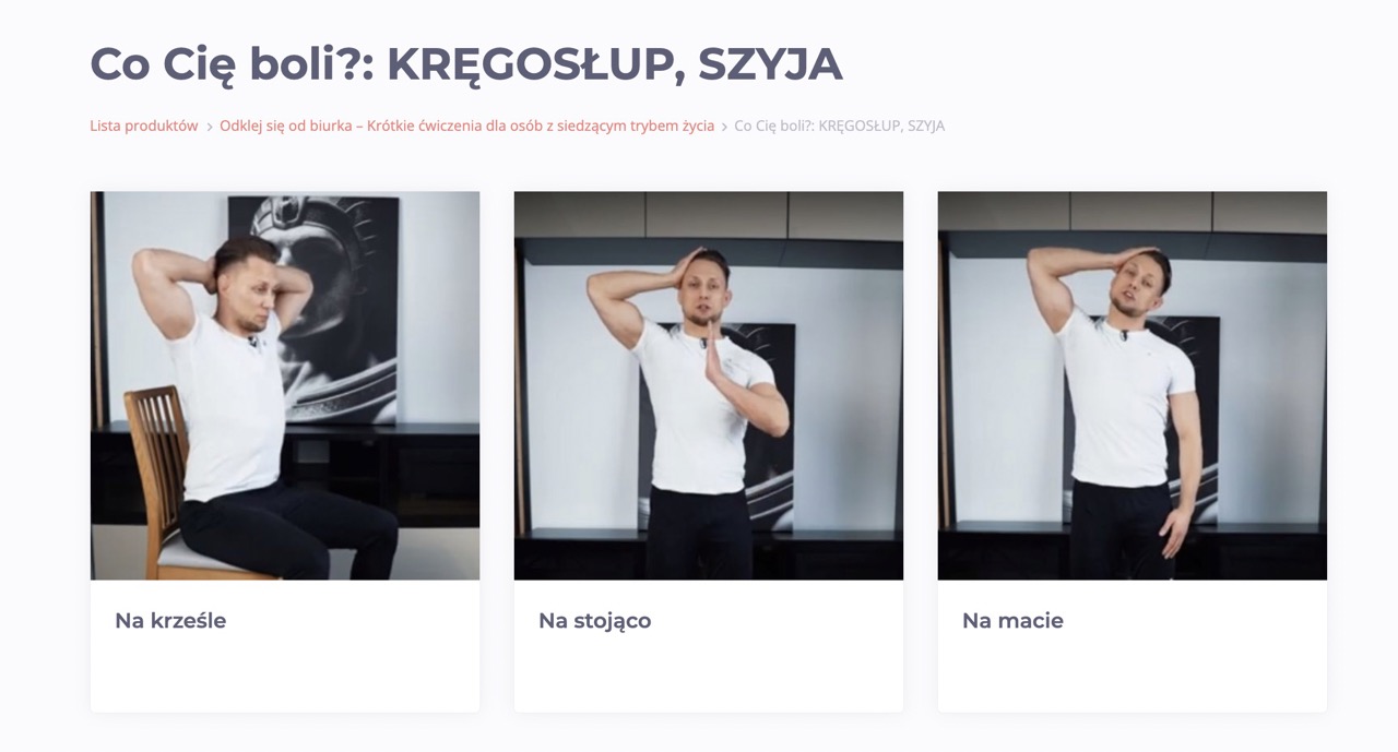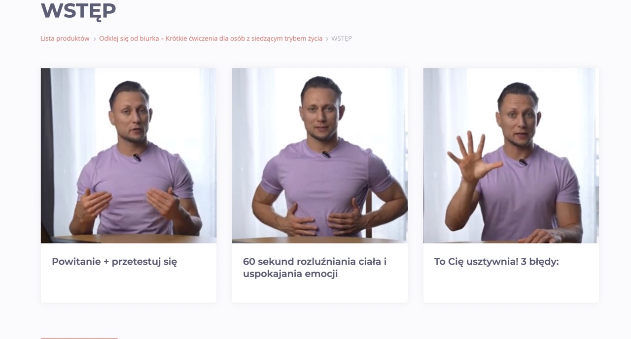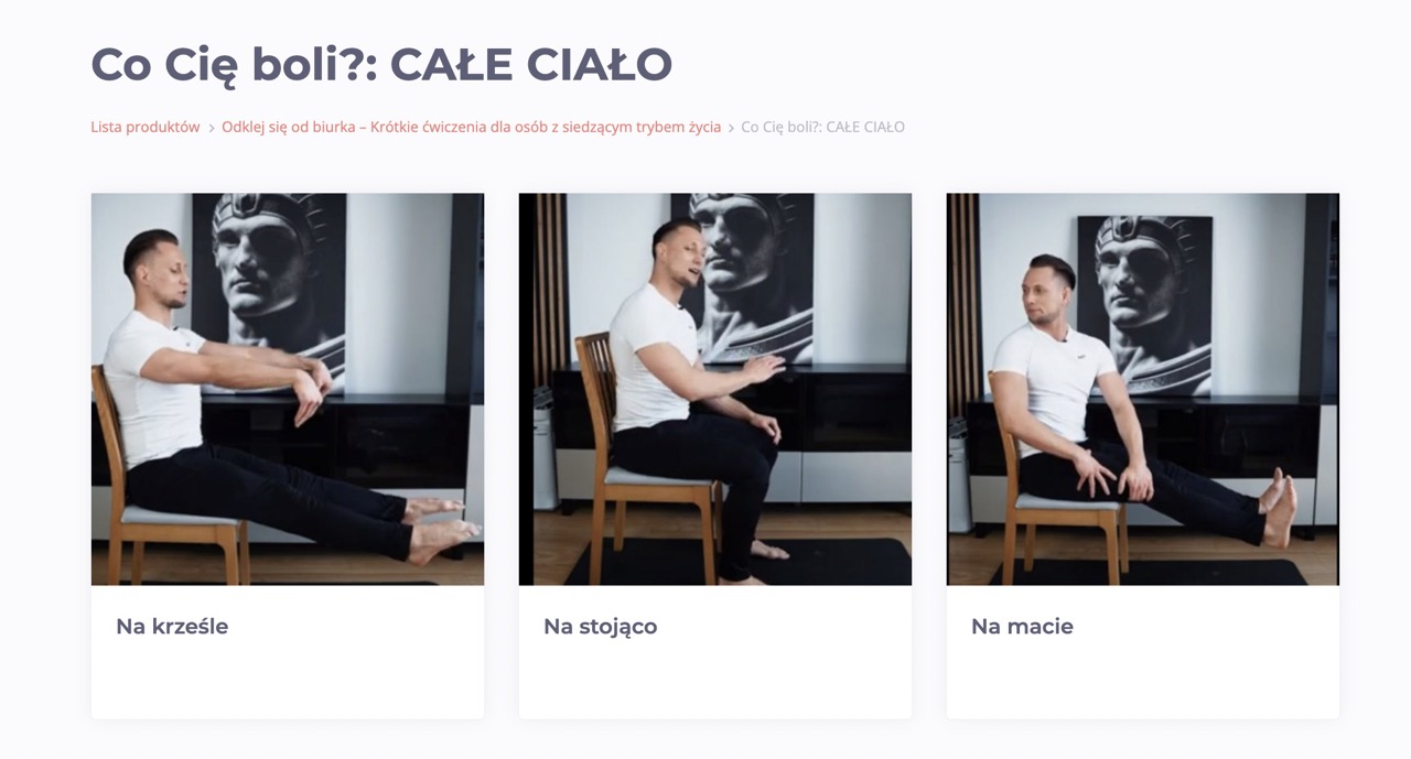 - Gotowe ćwiczenia wideo, do odtwarzania w dowolnym momencie